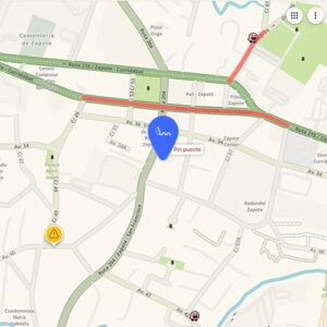 Frente a Centro Comercial El Cruce, Edificio negro a mano izquierda.